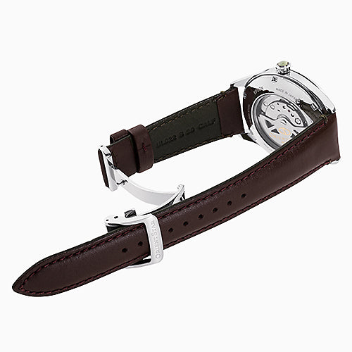 *機械式腕時計の平均日差について:日差とは24時間経過した時の進み・遅れです。静的精度は工場出荷時に静的状態・常温で調整・保証を行ったものとなります。機械式時計の特性上、ご使用になる条件(時計の姿勢、ぜんまいの巻き上げ具合、気温等)によっては、静的精度の範囲を超える場合があります。